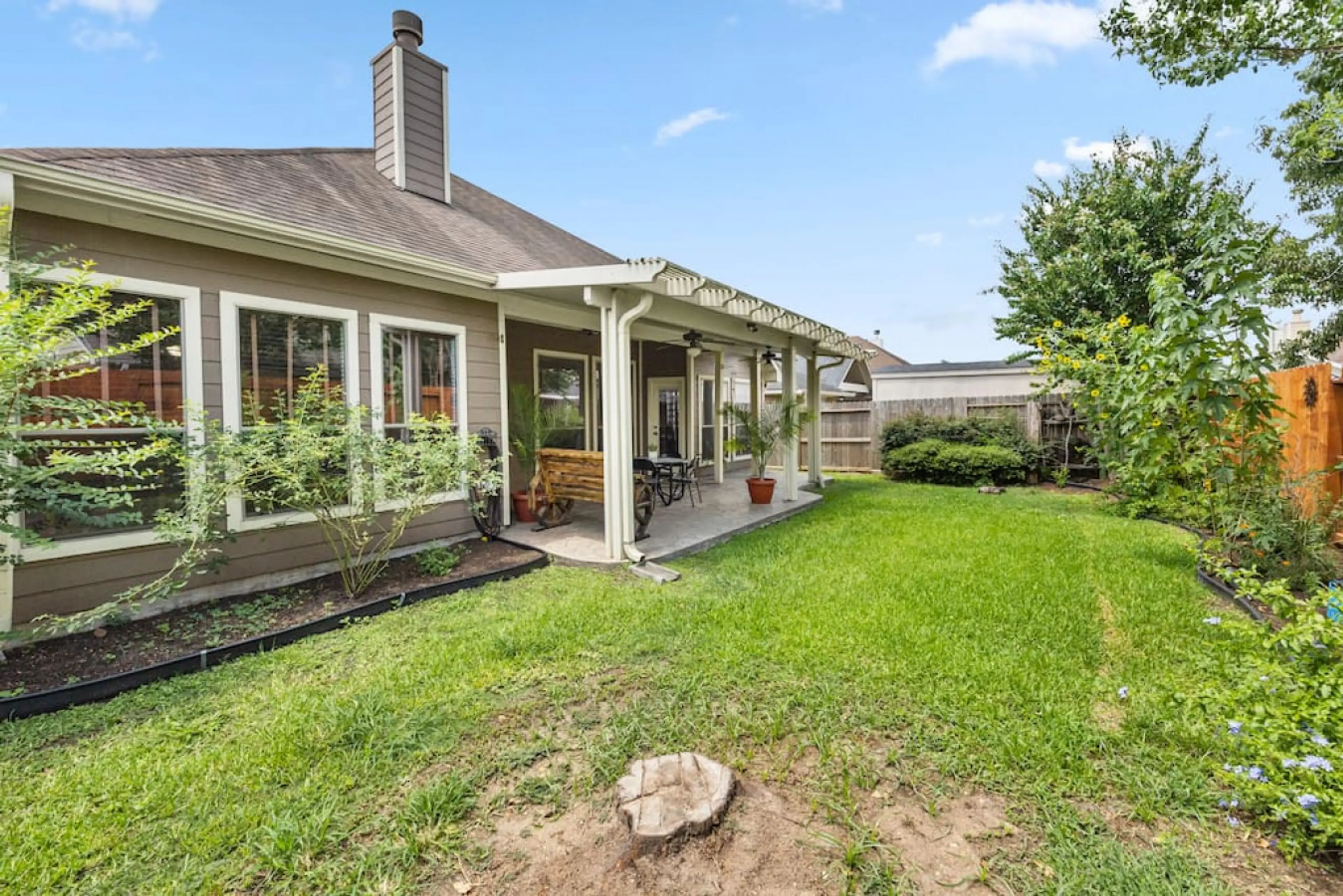 4BR/2.5BA • Sleeps 9 • Foosball • Covered Patio • Near Bear Creek Park Spacious and family-friendly, this peaceful Houston retreat features 4 bedrooms, 2.5 bathrooms, Smart TV in the primary suite, foosball table, fenced yard, and covered patio. Located just minutes from Bear Creek Park, Sam Housto...