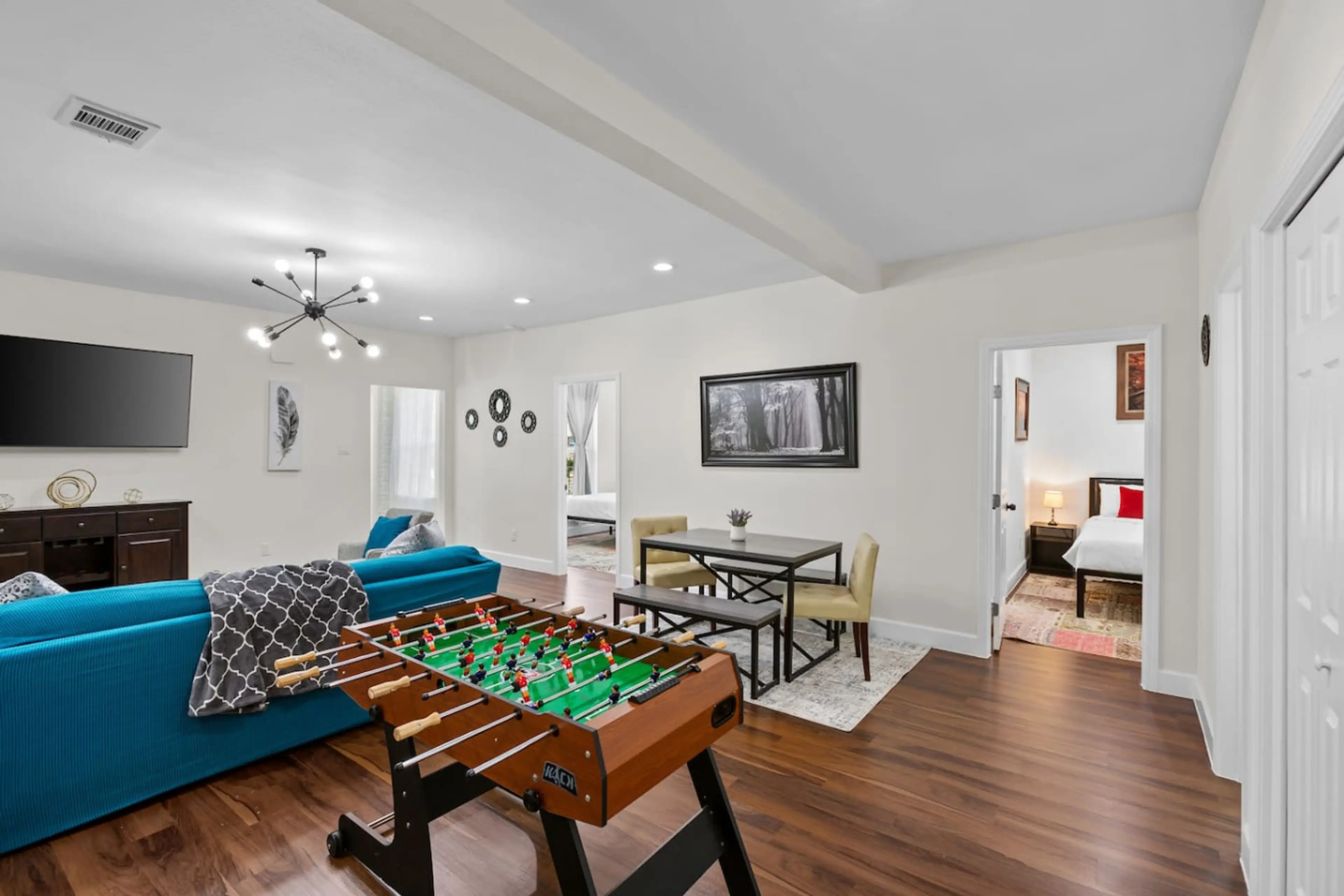Modern 2BR, 1.5BA ground-floor duplex near Texas Medical Center, UH, and Museum District. Enjoy king beds, a full kitchen, blackout curtains, a bright sunroom, and multiple workspaces. Perfect for medical, business, or leisure stays with easy access to Downtown and nearby attractions Welcome to Uni...