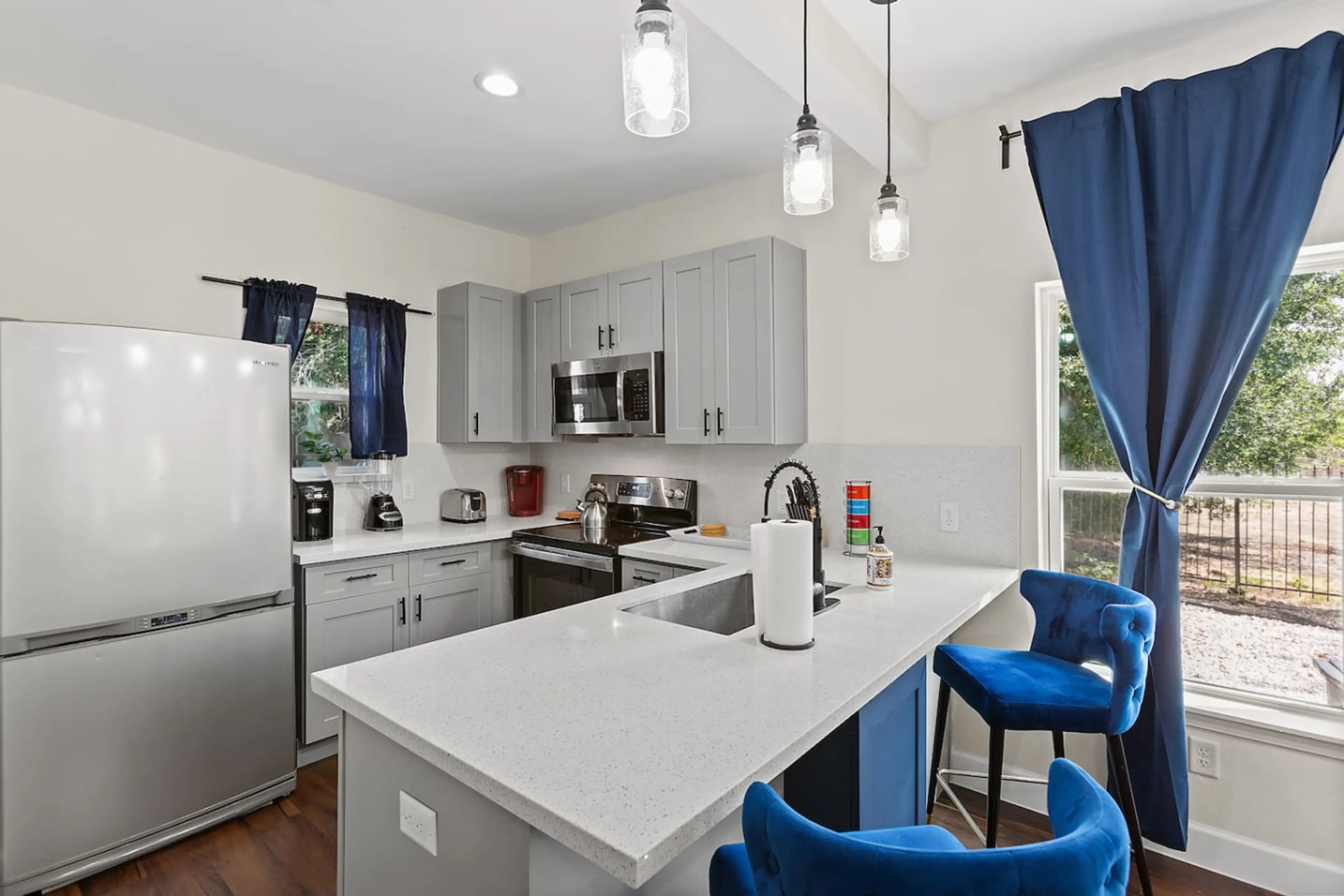 Stylish 3BR, 2.5BA gated duplex in central Houston with king beds, full kitchen, fast Wi‑Fi, washer/dryer, workspaces, and 65” TV. Enjoy karaoke, board games, and a private yard. Just minutes from Med Center, Downtown, Galleria & Daikin Park. Book both units for larger groups Welcome to Unit B – a ...